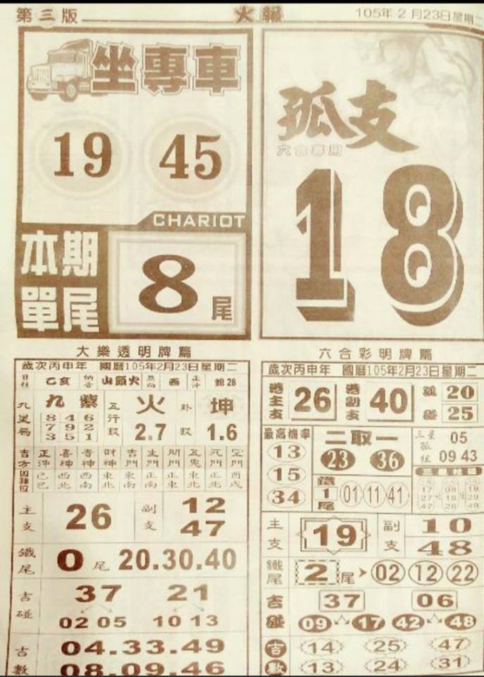 今彩539 2020/10/05 台北鐵報分享 供您參考