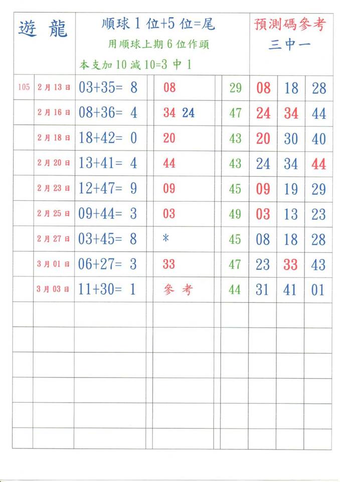 加州天天樂 2020/10/06 Usagi 九宮 精選低機號碼 供您參考