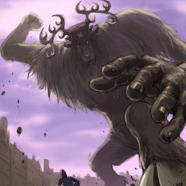 此结果是恶魔果实失控所造成,原因是吃下第三颗蓝波球,身体会巨大化成为人兽型,重量、头脑、毛皮、腕力、角力各部位都会强化,拥有超强的实力。但在两年后乔巴的暴走状态可以控制。