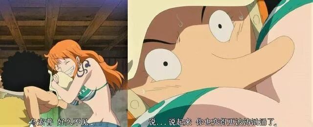 NO.4:还是乌索普,也不知道是纯属巧合,还是尾田故意安排;两年后的重逢,娜美第一个遇到的就是乌索普!在这两年间,娜美不仅实力有所提升,连身材也得到了质的飞跃。久后重逢,喜悦过头的娜美,直接给乌索普一个堪称福利的熊抱!