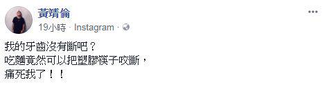 娛樂中心/綜合報導 新加坡男星黃靖倫近來積極發展副業,桌遊店不但吸引民眾前往,連星友都踩點捧場。23日黃靖倫透過臉書分享日常生活,透露自己將筷子「咬斷了」,讓他驚呼:「我的牙齒沒有斷吧?」大批網友看見後,紛紛訝異表示:「好疼的!」 ▲黃靖倫在台灣耕耘多年。(圖/翻攝自臉書) 黃靖倫昨在社群網站上透露,自己吃麵時不慎將塑膠筷子「咬斷了」,令他忍不住嘆:「我的牙齒沒有斷吧?痛死我了!」並附上一張拿著斷掉的筷子的照片,圖中黃靖倫眉頭深鎖,表情十分痛苦,卻也意外曝露了「牙齒比筷子還堅固」的秘密。 ▲黃靖倫咬斷筷子。(圖/翻攝自臉書) PO文一出,引發許多網友議論,笑說黃靖倫牙齒已是「鐵牙」等級,「筷子好吃嗎」、「保重靖倫」、「最強黃金牙齒」,甚至有人調侃他:「叫老闆筷子換成鋼鐵筷嗎?」黃靖倫則回:「還好不是鋼鐵製的,要不然是牙齒斷喔」。 ▲黃靖倫臉書全文。(圖/翻攝自臉書)