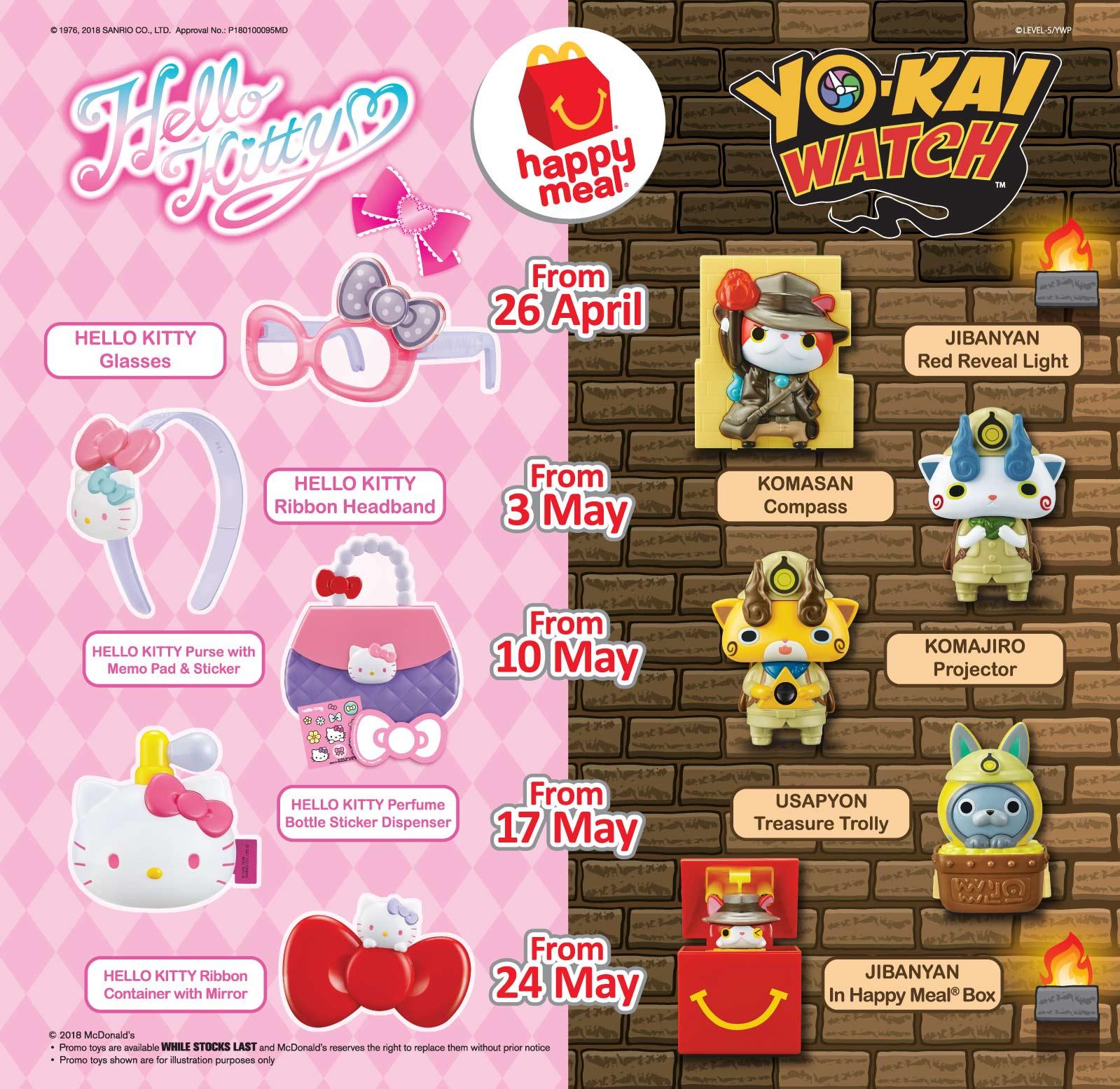 哇!哇!哇!萌爆了啦!麥當勞新推出的玩具真的太萌了啦!麥當勞(McDonald’s)每個月都會推出不同的玩具收集品。麥當勞推出的新玩具是Hello Kitty and Yo-Kai Watch™ 。麥當勞將在每個星期四將會推出兩款不同造型的超萌玩具。從4月26日開始,麥當勞將免費送 各種造型的吉蒂貓和日本著名的奇妙生物們。想要收集這些玩具的朋友,可以在4月26日起前往麥當勞購買 Happy Meal,就可獲得這些玩具。這項優惠適用於全馬的麥當勞。超萌玩具採用先到先得,送完為止的方式。各位玩具收集者,你要抓把勁兒啦。