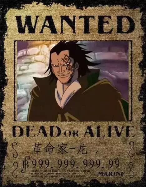 作为革命军的老大,龙的悬赏金有多少呢?有人认为有几百亿亿贝利,是海贼王中悬赏最高的了。上图的悬赏金给出了999亿贝利。可以说是天文数字了。但我觉着对于龙来说,悬赏已经没有任何意义了。