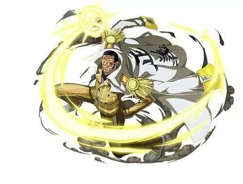 上榜理由:恶魔果实自然系闪闪果实能力者——闪光人,遇到攻击时身体能够光线化(光子化),借助光的各种特性作为攻击手段,并能用光速移动,但是由于光的直线传播性质似乎不能在移动中转弯,要使用招式“八咫镜”借助光的反射来做到自由行动,由于是自然系恶魔果实能力者,只有拥有霸气、海楼石武器或黑暗果实的能力才能攻击到他。黄猿的果实能力是三大将里最变态的。但是由于他太过于依靠果实能力,自身的体术不是很强,所以排在赤犬后面。在岛上面对四位赏金过亿的“超新星11人”,展示出压倒性的力量,将其中四人轻松解决,并险些将索隆杀死。草帽一伙幸得“冥王”雷利相救,与黄猿打成平手。 等级:A+