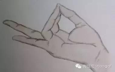 將拇指、無名指、小指指尖捏在一起。其餘手指伸直。