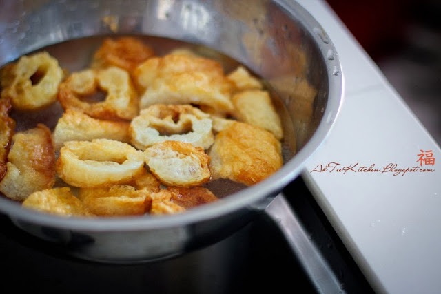 油炸过后, 只需要泡在食水里20-30分钟, 鱼漂就会软化及稍微涨大, 当您要开始烹煮的时候, 记得事先轻轻把里头的水分榨干, 以免把汤头冲淡!