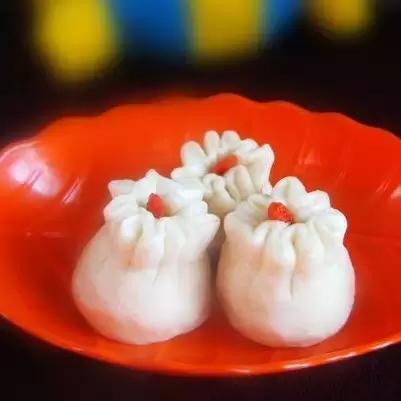 5. 將圓片四周捏在一起做成生坯;在生坯上點綴枸杞,醒20分鐘,蒸15分鐘即可。