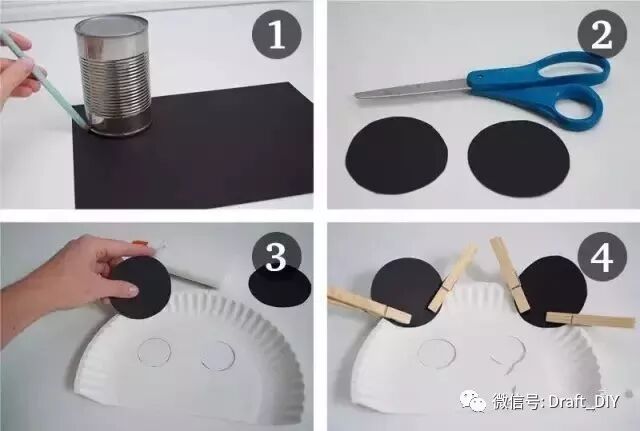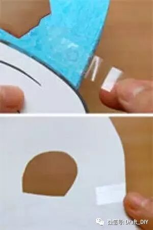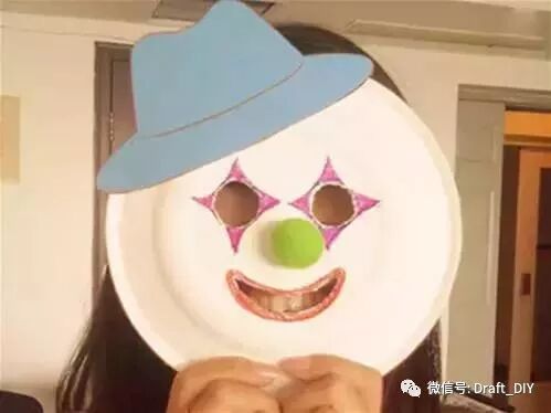 制作方法:首先将餐盘一分为二,我们要用的是宽的那一部分。然后运用工具在合适的地方挖两个孔,方便视物。