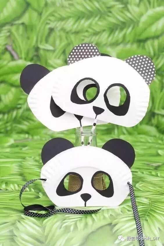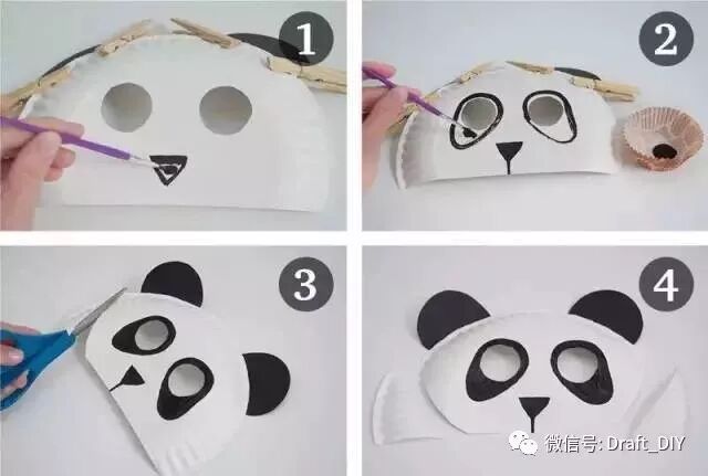 在面具两侧打孔,穿上松紧带,一个萌萌哒熊猫面具就完成啦
