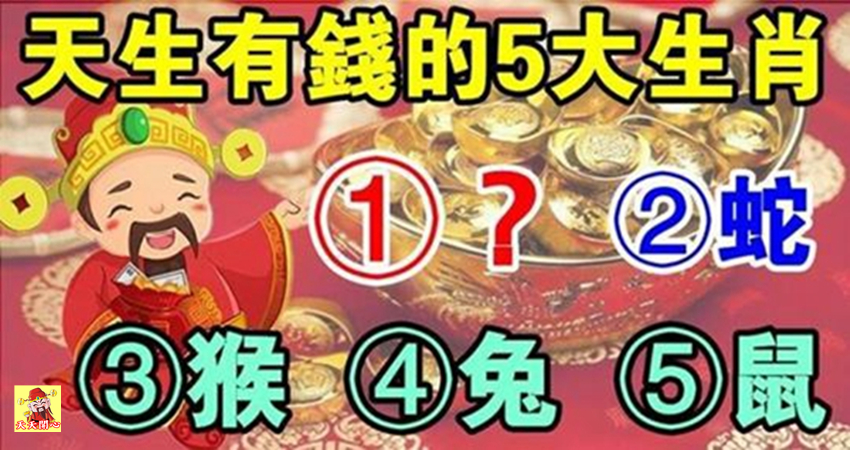 財富是由雙手創造的,不過要想賺大錢還需要點運氣或者命中帶點財氣才行,有些人就是天生的富貴命,多財多金,即使窮困潦倒,經過努力拚搏之後也會成為大富豪。下面就一起看看天下最有錢的五大生肖都有誰吧,你上榜了嗎?