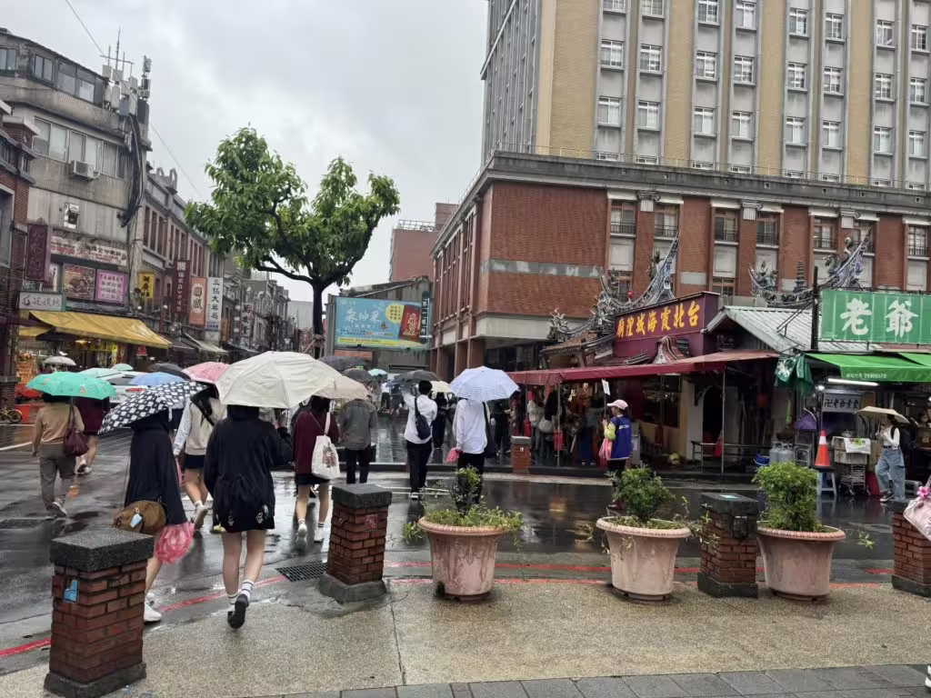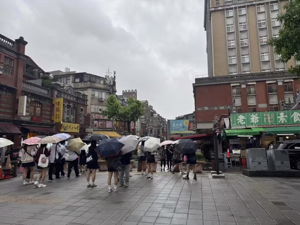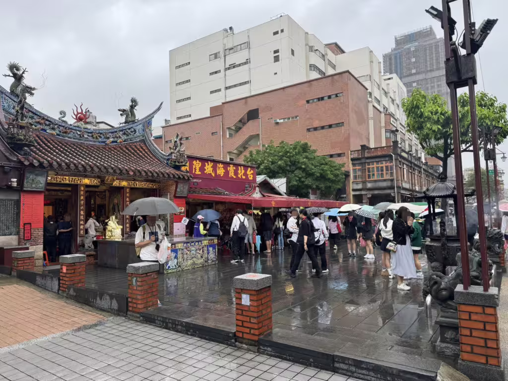 社群平台Threads上,一位網友拜訪位於台北市大稻埕的霞海城隍廟時,發現廟前聚集來台灣畢業旅行的日本女高中生,忍不住驚呼:「原來霞海城隍廟是日本高中生畢業旅行的景點了!」即使天候不佳下著雨,川著制服裙的櫻花妹仍撐傘前往霞海城隍廟。