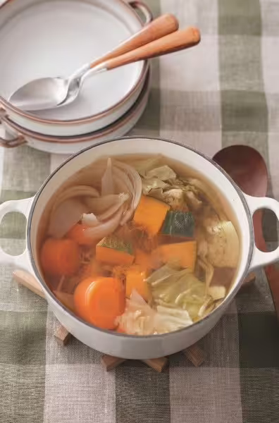 天野醫師教學,只要將洋蔥、胡蘿蔔、高麗菜和南瓜這4種蔬菜切好放入水中,用小火慢燉20分鐘即可,想切成大塊也行。關於喝湯的時間和量並沒有硬性規定,天野醫師喜歡每天喝一大碗,「尤其是在前三個月務必三餐都喝,一定會注意到身體的變化。」你會想煮這款湯喝喝看嗎?