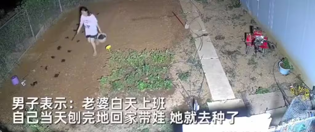 根據《新浪福建》報導,福建省漳州市一名人夫看了監視器才發現,老婆下班後從晚上7點到10點多還待在家門前的田地辛勤工作。人夫表示妻子白天要去上班,自己當天整地後回家顧孩子,老婆下班後就主動去栽種植物。人夫看老婆一個人在田裡忙了3小時很是心疼,也認為自己一定是「拯救了銀河」才有福氣娶到這樣的老婆。