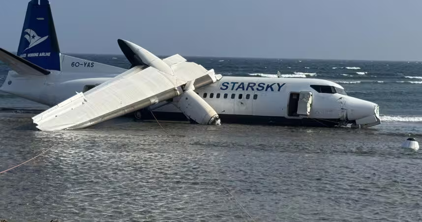 索馬利亞一架國內線客機在首都摩加迪休發生驚險事故!隸屬於「星空航空」 (Starsky Aviation) 的班機,起飛後不久因出現技術異常緊急返航,未料降落時無法在跑道內完全停住,最終衝出跑道滑入機場旁的海岸淺水區,所幸機上55人全數安全撤離,未傳出人員傷亡。