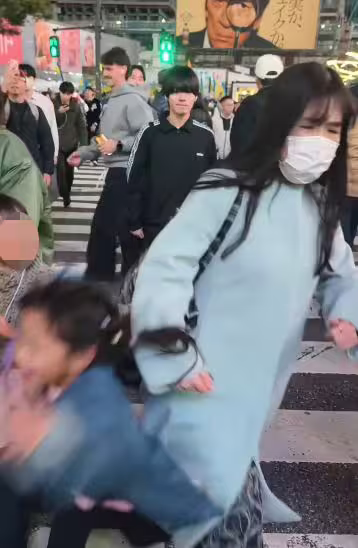 根據媒體《TVBS》、《三立新聞網》的報導,日前一名台灣女童與家人到日本東京旅遊,並在澀谷知名十字路口錄影留念,怎料女童才對鏡頭開心比YA,背後突然一名戴著口罩的藍衣女子直直逼近女童,並刻意用手肘用力頂撞女童背部,女童不勘撞擊力道直接重摔在地,然而撞到人的女子頭竟也不回地快步離開。