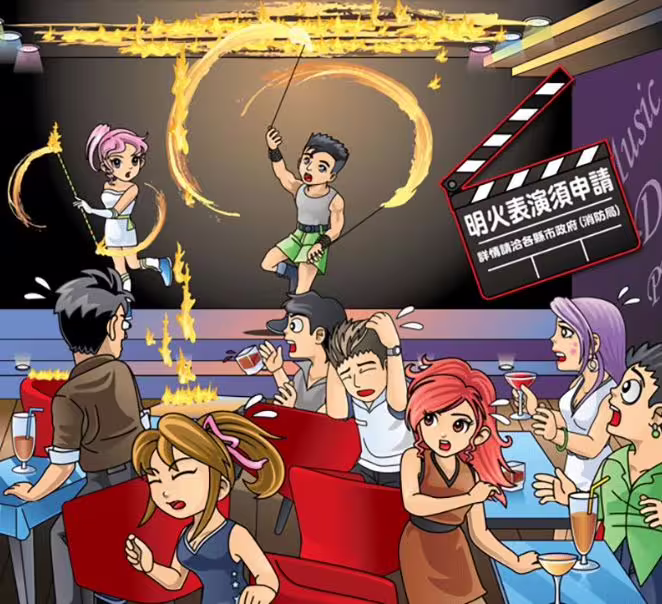 除了安全問題,還可能觸法。消防署提醒,依《消防法》規定,如果在公共建築或指定場所,未經許可進行會產生火焰、火花或火星的表演活動,最高可處新台幣15萬元罰鍰。