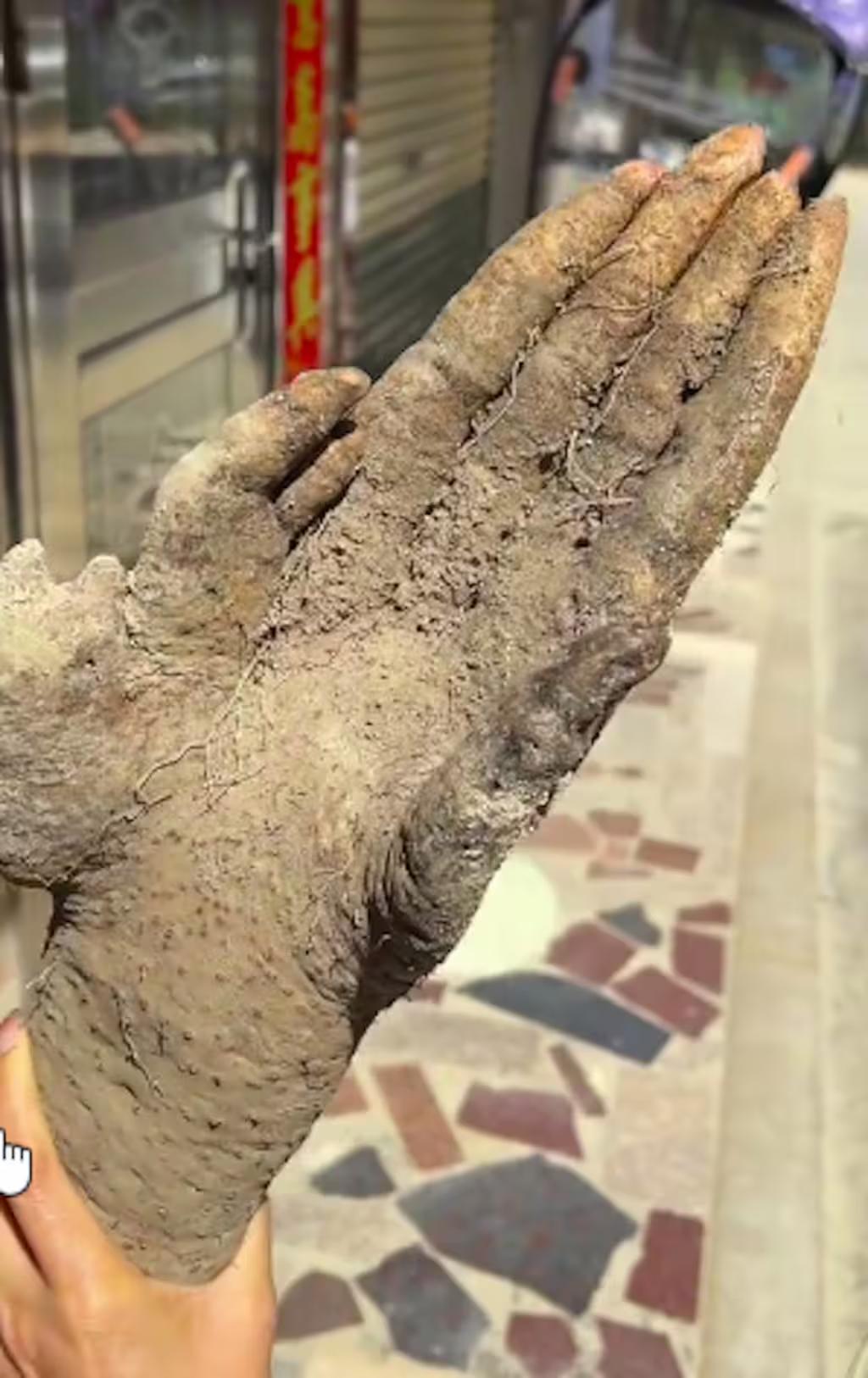 根據媒體《新浪網》的報導,中國廣東一名老翁在自家菜園中挖出一條外觀奇特的淮山 (山藥),不僅像是人手般擁有5根指頭,手指部分和人體一樣長短不一,末端還有酷似指甲的輪廓,讓老翁驚出一身冷汗。