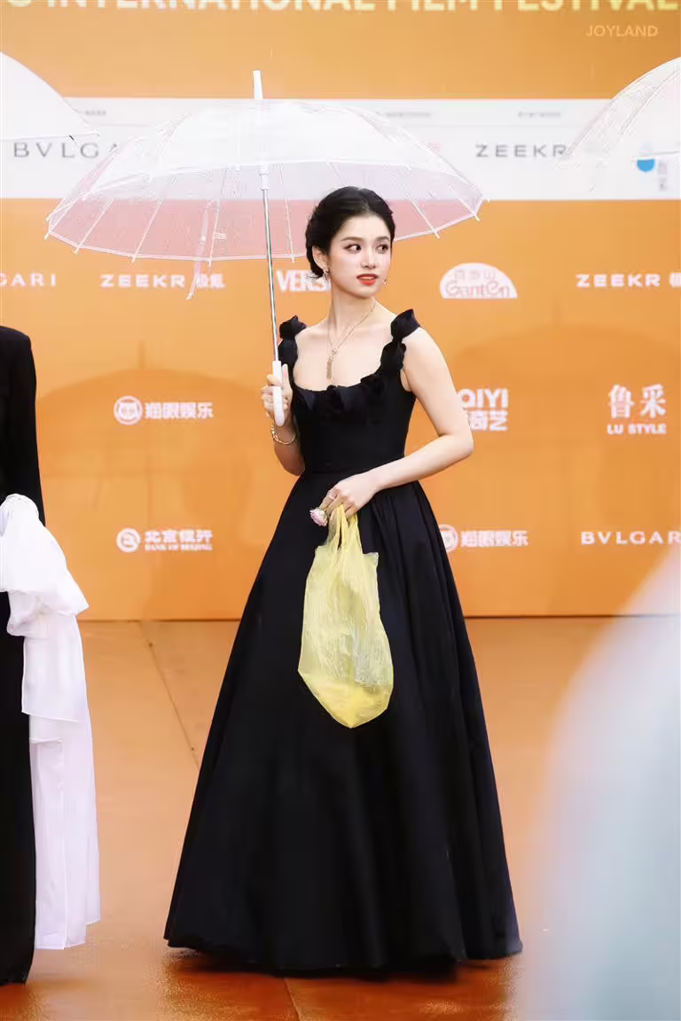 根據媒體《三立新聞網》、《ETtoday新聞雲》的報導,近期網路流傳了一系列中國女演員張婧儀走紅毯的照片,只見她身著黑色禮服,長髮挽起配上簡約珠寶,整體造型氣質婉約,然而她手上竟拎了一個黃色塑膠袋,衝突畫面引發熱議。